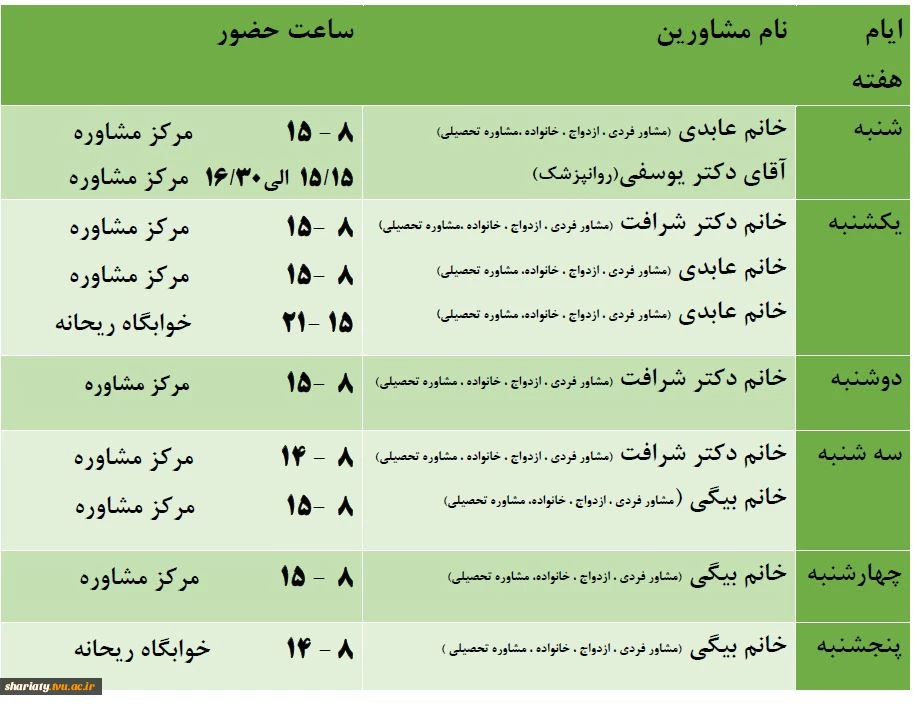 ساعات حضور مشاورین دانشکده دکتر شریعتی 3