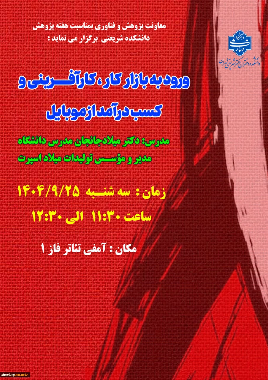 امتیاز دهید : سمینار ورود به بازار کار ، کارآفرینی و کسب درآمد از موبایل 4 چهارشنبه 26 آذر 1404 ساعت 9:04