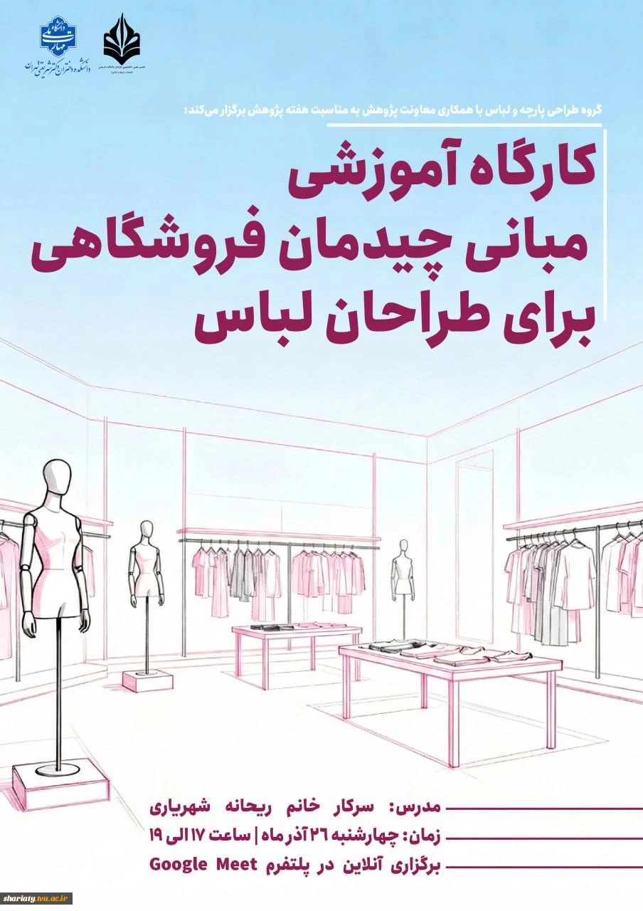 امتیاز دهید : کارگاه آموزشی مبانی چیدمان فروشگاهی برای طراحان لباس از گروه طراحی پارچه و لباس به مناسبت هفته پژوهش 2 شنبه 29 آذر 1404 ساعت 12:50