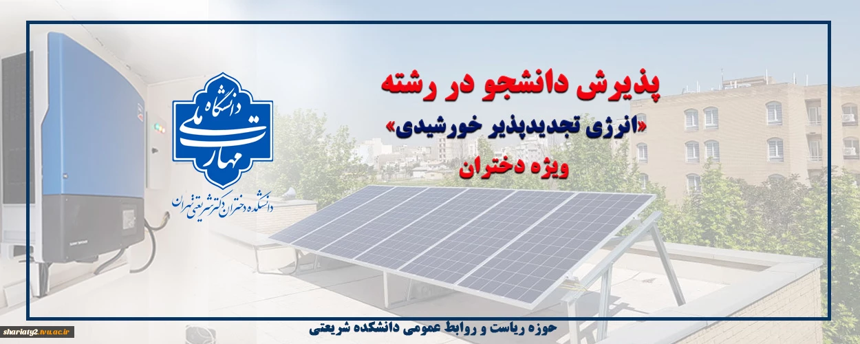 قابل توجه دارندگان دیپلم ریاضی-فیزیک، علوم تجربی و فنی-حرفهای الکترونیک: پذیرش کاردانی انرژی تجدیدپذیر خورشیدی در دانشکده ملیمهارت شریعتی تهران ویژه دختران